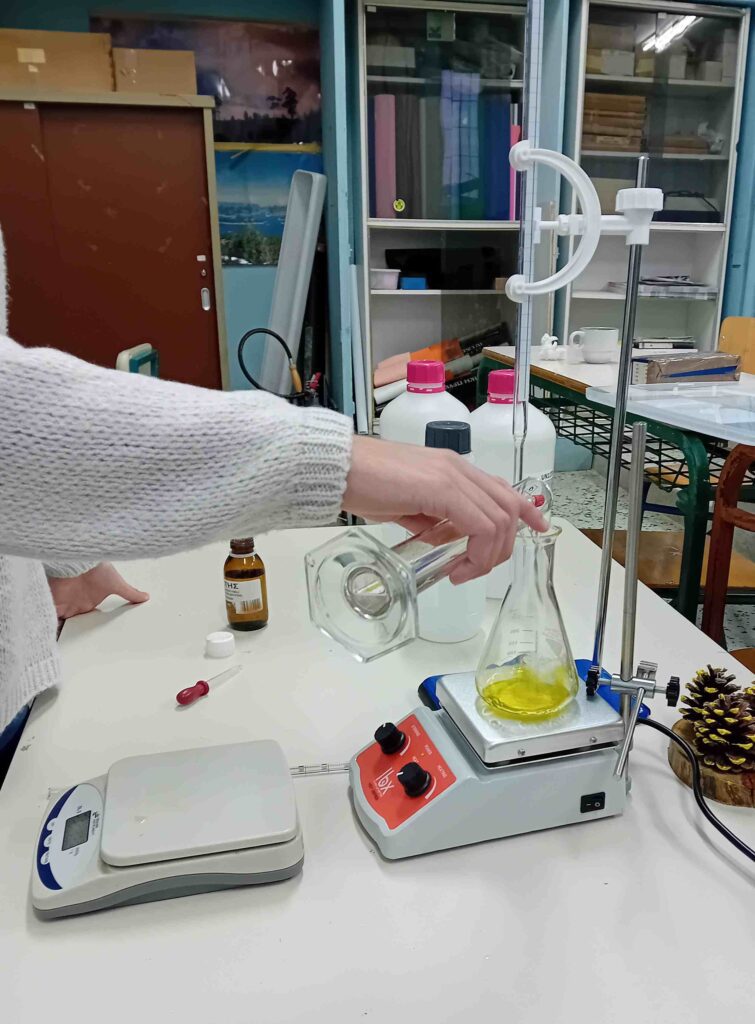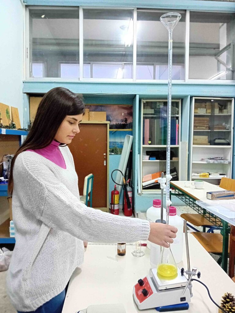 Η μέτρηση της οξύτητας είναι κρίσιμη για την αξιολόγηση της ποιότητας του ελαιολάδου, καθώς επηρεάζει τη γεύση, το άρωμα και την υγιεινή του προϊόντος. Οι σπουδαστές χρησιμοποίησαν μεθόδους ογκομέτρησης για να προσδιορίσουν την οξύτητα δείγματος ελαιολάδου, εμβαθύνοντας στην επιστημονική διαδικασία που κρύβεται πίσω από την παραγωγή ενός από τα πιο σημαντικά και δημοφιλή τρόφιμα της Μεσογείου.