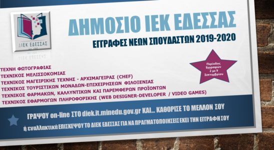 Έναρξη Εγγραφών Νέων Σπουδαστών στο ΔΙΕΚ Έδεσσας για το 2019-2020
