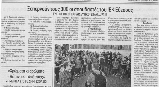 Αφιέρωμα της “Εδεσσαϊκής” στους 300 σπουδαστές του ΔΙΕΚ Έδεσσας
