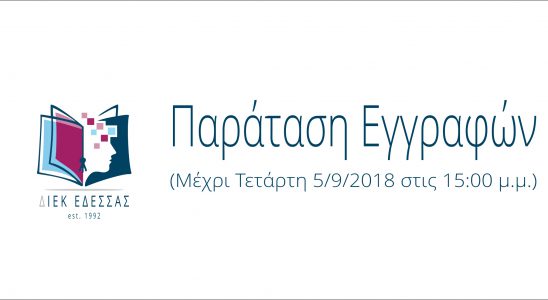 Σας ενημερώνουμε πως παρατείνεται η προθεσμία υποβολής αιτήσεων ΝΕΩΝ ΣΠΟΥΔΑΣΤΩΝ για το έτος κατάρτισης 2018-2019 μέχρι την ΤΕΤΑΡΤΗ 5/9/2018 στις 15:00 το μεσημέρι. Η ηλεκτρονική υποβολή της αίτησης γίνεται στο…