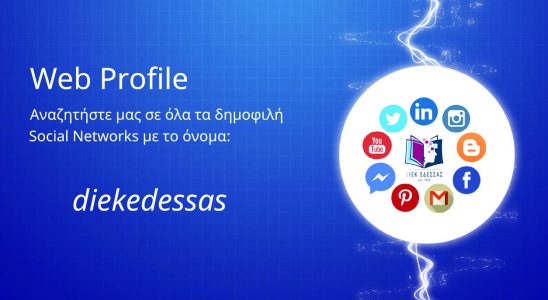 Πλήρης είναι η παρουσία του ΔΙΕΚ ΕΔΕΣΣΑΣ στα σύγχρονα κοινωνικά δίκτυα του Διαδικτύου. Οι πολυπληθείς φίλοι μας μπορούν να μας αναζητήσουν σε όλα τα Social Networks με κοινό όνομα το…