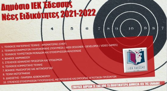 Το Δημόσιο ΙΕΚ Έδεσσας σας ενημερώνει για τις νέες ειδικότητες που θα λειτουργήσουν κατά το ακαδημαϊκό έτος 2021-2022. Πολύ σύντομα και σε ημερομηνία που θ’ ανακοινωθεί έγκαιρα από τις ιστοσελίδες…