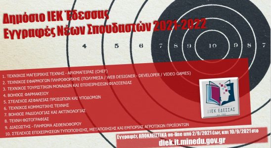 ΕΝΑΡΞΗ ΕΓΓΡΑΦΩΝ ΝΕΩΝ ΣΠΟΥΔΑΣΤΩΝ ΣΤΟ ΔΗΜΟΣΙΟ ΙΕΚ ΕΔΕΣΣΑΣ ΓΙΑ ΤΟ 2021-2022