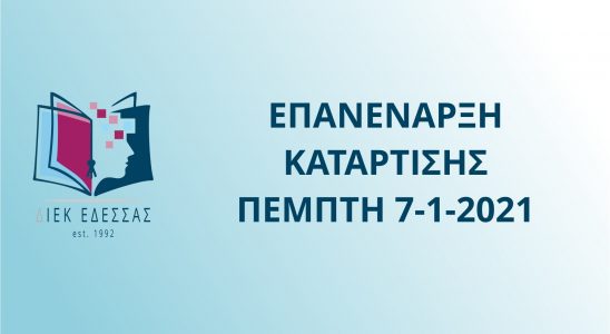 ΕΠΑΝΕΝΑΡΞΗ ΚΑΤΑΡΤΙΣΗΣ ΠΕΜΠΤΗ 7-1-2021