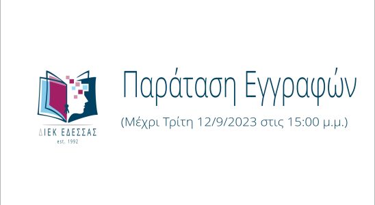 ΠΑΡΑΤΑΣΗ ΕΓΓΡΑΦΩΝ ΝΕΩΝ ΣΠΟΥΔΑΣΤΩΝ ΣΤΟ ΔΙΕΚ ΕΔΕΣΣΑΣ ΜΕΧΡΙ ΤΗΝ ΤΡΙΤΗ 12/9/2023
