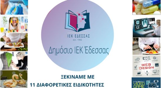 Σας ενημερώνουμε πως στο ΔΙΕΚ Έδεσσας θα λειτουργήσουν τελικά οι κάτωθι ειδικότητες καθώς συμπληρώθηκε ο απαραίτητος αριθμός σπουδαστών. Η οριστική εγγραφή των επιλεγέντων σπουδαστών πρέπει να ολοκληρωθεί μέχρι και την…